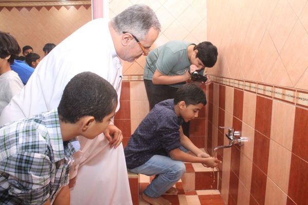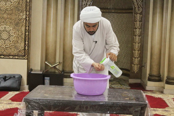 وقدم الشيخ المويس دورة فقهية عن كيفية الوضوء والأحكام المتعلقة به بشكل عملي أمام الطلبة، وقام الطلبة بالتطبيق العملي للوضوء تحت اشرافه مع بقية المدربين.