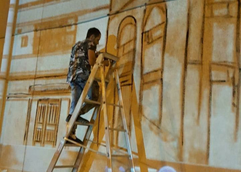 طبع التشكيلي يعقوب الصرنوخ مع مجموعة من الفنانين تراث منطقة صفوى على جدارية بطول 65 متر تنتمي للفن الواقعي ضمن مبادرة «ديرتنا ملونة» بإشراف بلدية القطيف، اعتزازاً بالوطن والعودة بالجيل الجديد للماضي الجميل.