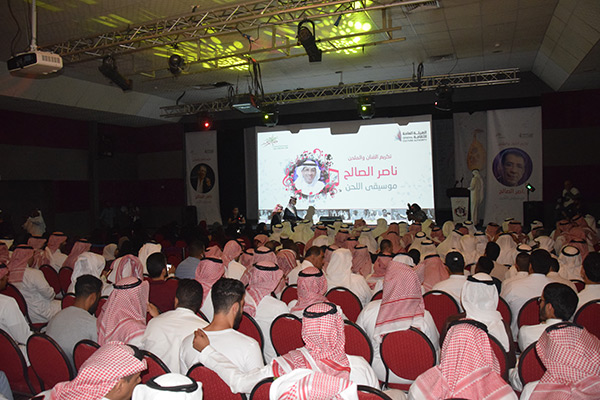 غصت أركان جمعية الثقافة والفنون في الدمام، بجمهور محبي الملحن ناصر الصالح من بعض مناطق المملكة، من ملحنين شباب وشعراء ومطربين، كان التصفيق المستمر حاضراً كل ماذكر اسم المكرم وبعض من ألحانه.