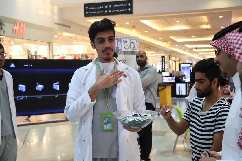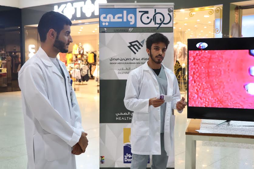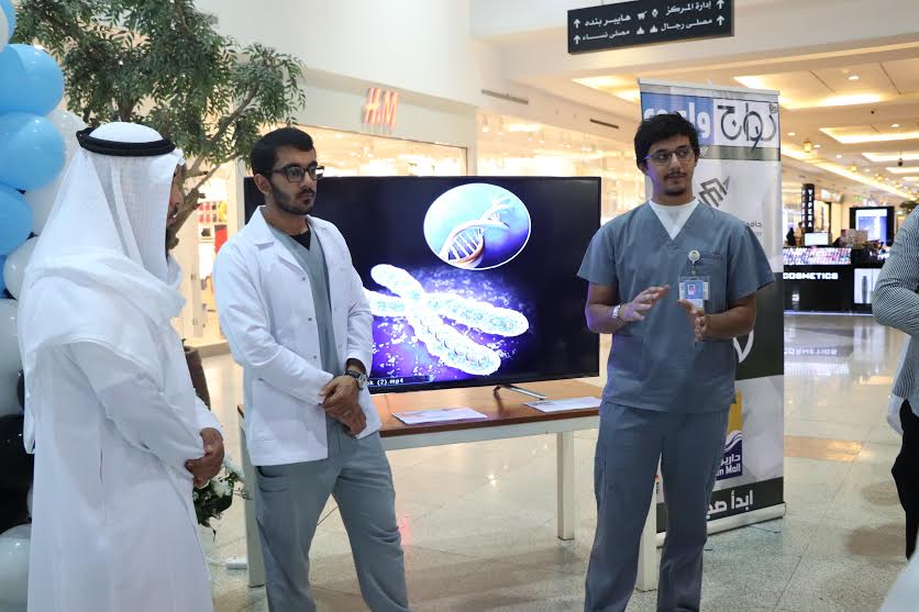 شارك 10 طلاب طب من جامعة الامام عبد الرحمن بن فيصل، مساء الخميس، بالتعريف بأهمية الفحص قبل الزواج وتجنب الأمراض الوراثية، وذلك خلال الحملة التثقيفية التي أطلقوها تحت عنوان «زواج واعي» بدارين موال في الدمام.