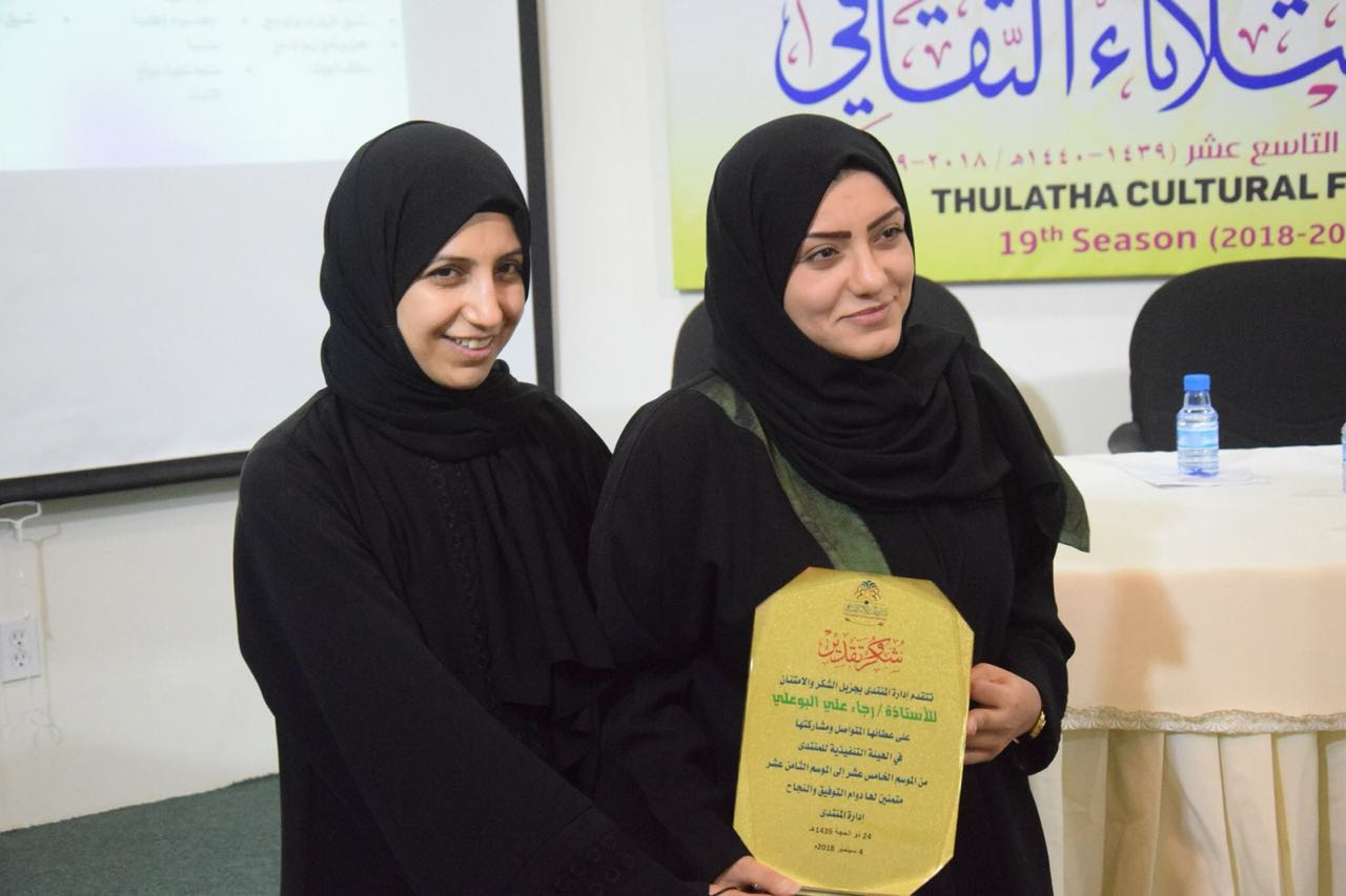 واختتم اللقاء بتكريم أعضاء الهيئة التنفيذية للمنتدى السابقين وهم كل من عالية أبو شومي، ومحمد آلمحسن وصديقة المهدي، وموسى الهاشم، وغادة آل سيف، ورجاء البوعلي وهدى القصاب، الذين تحدثوا عن تجربتهم في العمل مع المنتدى في هيئته التنفيذية لسنوات طويلة.