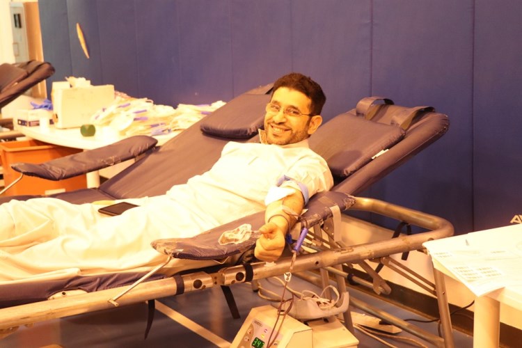 وذكر ان من فوائد التبرع المساهمة في انقاد حياة المرضى واعطائها شعور بالسرور والرضاء والوقاية من مرض الضغط والسرطان عن طريق التخلص من الحديد الزائد في الجسم.