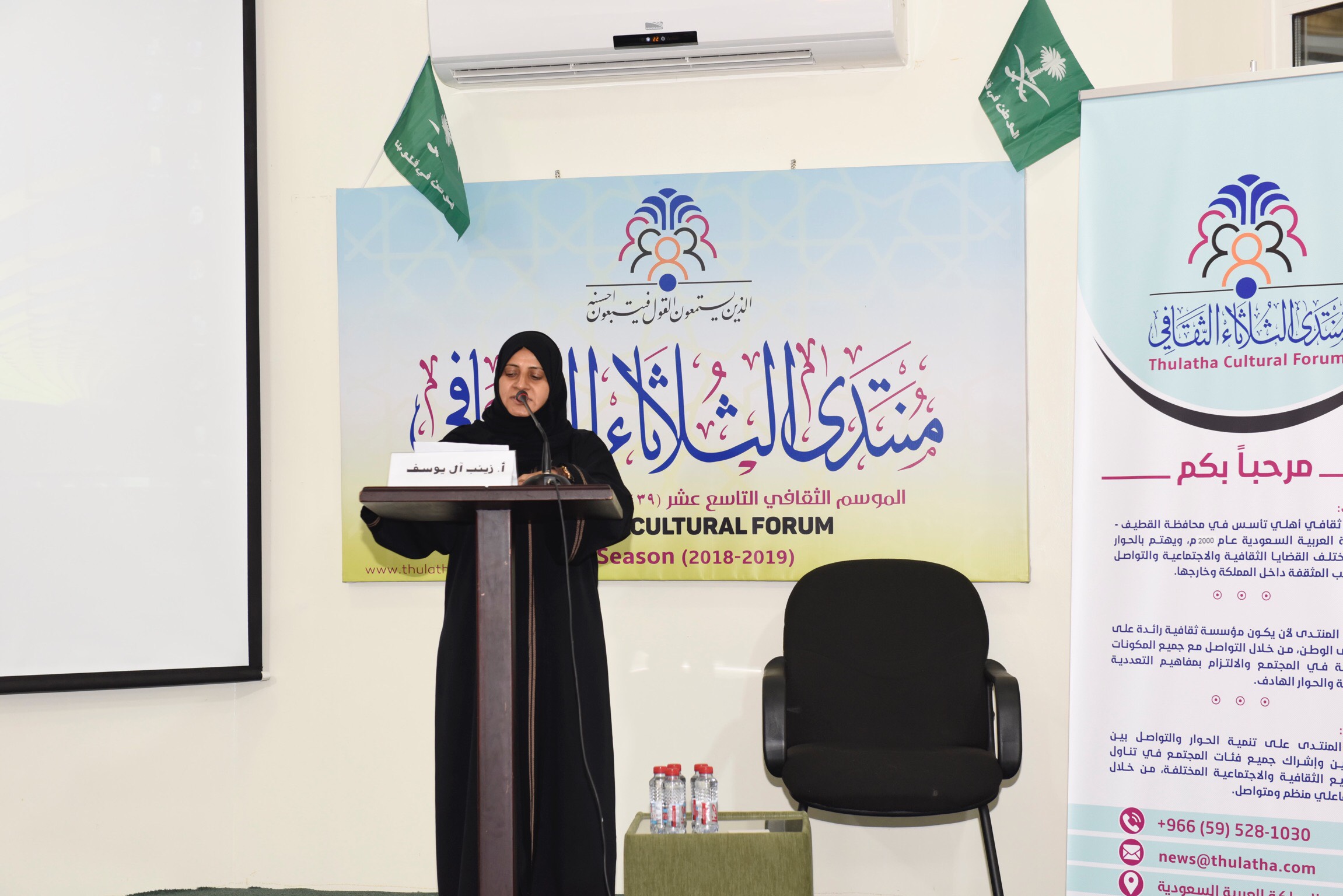 وبمشاعر وطنية جياشة تفاعل الحضور مع كلمات الدكتورة مريم سعود بوبشيت، المشرف العام على مركز مريم بوبشيت للاستشارات التربوية، والتي تحدثت عن نشأتها في مدينة الدمام وتجربتها في التدريس في مدارس القطيف.