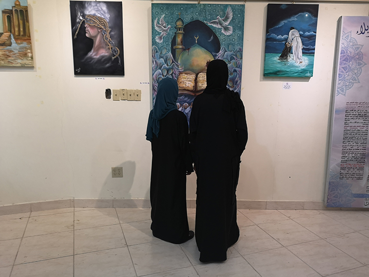 وذكرت أن عنوان المعرض الفني لهذا العام ”طوى الإمام المهدي ع“، واحتوى على ”لوحات مرسومة، صور فوتوغرافية، نظارة العالم الإفتراضي“ جولة في واقعة الطف ”، ورش فنية لليافعات في كل من“ الديكوباج للفنانة أزهار المدلوح، الطباعة الحريرية للفنانة دلال الجارودي، طي الورق للفنانة بثينة اللويم، فن الأوريغامي للفنانة فاطمة الدبيس، الرسم المباشر بمشاركة الفنانات آملة جضر، وياسمين الصبيحة، ونرجس دعبل".