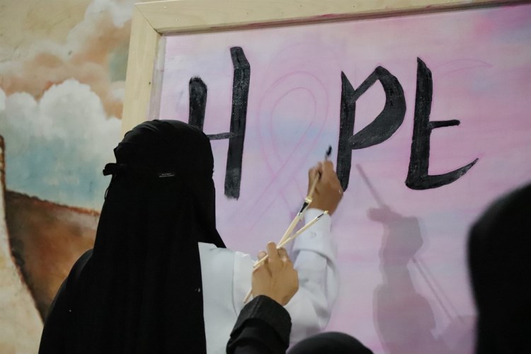 وبينت أن فكرة اللوحة جاءت بالتزامن مع شهر اكتوبر الذي يتضمن اليوم العالمي لسرطان الثدي، حيث أرادوا تقديم شيء مختلف للمرضى في قسم السرطان بإحدى المستشفيات.