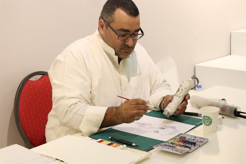 وضم 50 عملا لمدارس فنية متنوعة، مستمراً خمسة أيام يصاحبها ورش يوميه أهمها ورشة للفنان البحريني خليفة شويطر مساء الأحد.