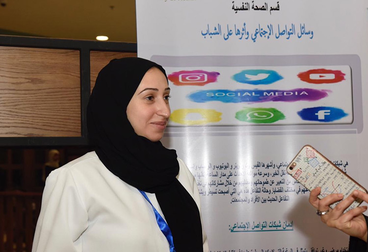 جاء ذلك خلال تواجدها في الركن الخاص بوسائل التواصل الاجتماعي وأثرها على الشباب المقام في فعالية نظمها مستشفى القطيف المركزي للاحتفاء باليوم العالمي للصحة النفسية.