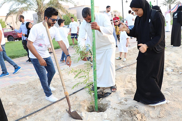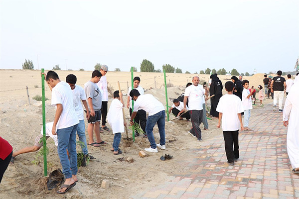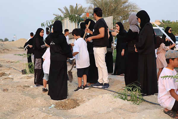 تفاعل عدد من المتطوعين والمتطوعات في مدينة صفوى مع المبادرة البيئية التوعوية «نزرعها لننعم بها» التي نظمها فريق بصمة خير التطوعي، اليوم، بأشراف بلدية صفوى في ممشى جاوان.