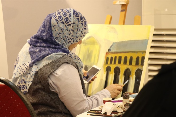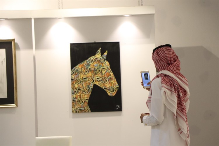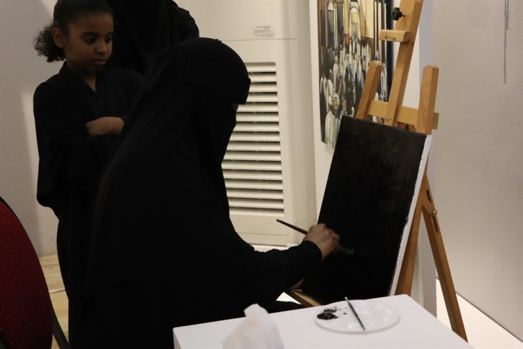 وشاركت الفنانة فاطمة السادة بلوحة كبيرة رسمت فيها زوار في الحرم النبوي الشريف، ولوحة أخرى لفارس ينتطي خيله.