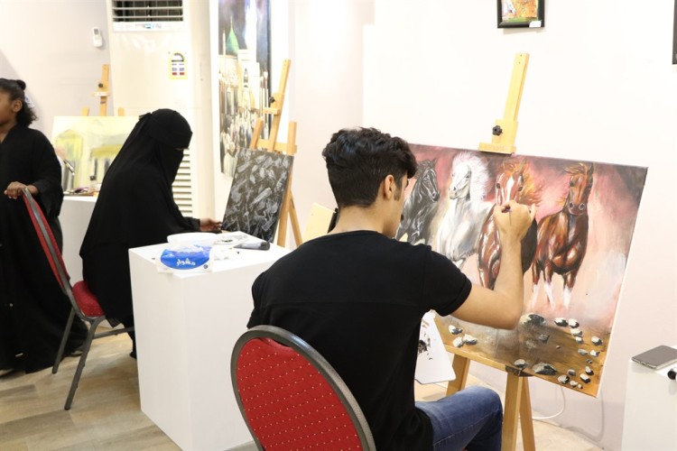 شارك ثلاثة رسامين بالرسم المباشر في معرض فنون النخبة التشكيلي الذي افتتح يوم الاثنين بتنظيم لجنة الفنون التشكيلية والخط العربي بجمعية الثقافة والفنون بالدمام، وضم 53 لوحة فنية.