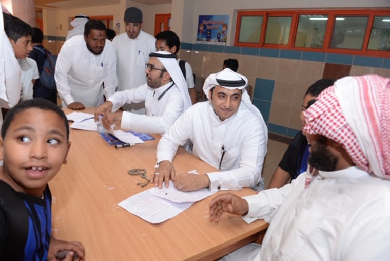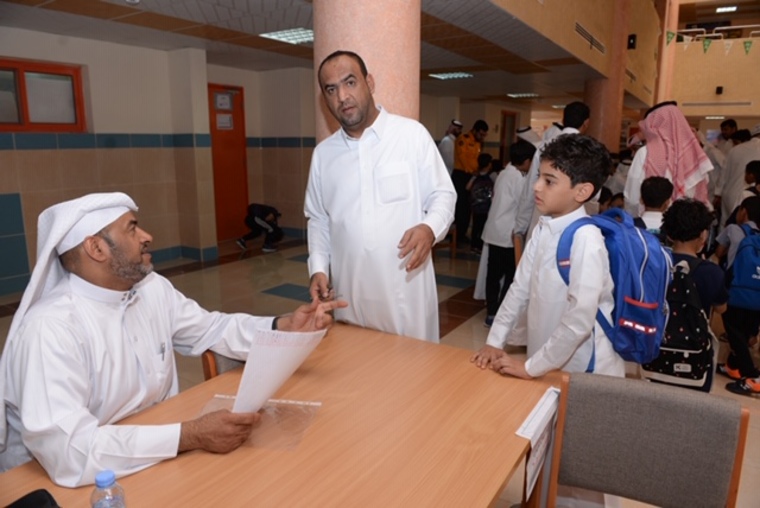 وكان في مقدمة المستقبلين لأولياء الأمور قائد المدرسة عبدالله الراجح، والوكيل حسين الشيخ، والوكيل سلطان الحقباني، والمرشد الطلابي عثمان العبدالحي.