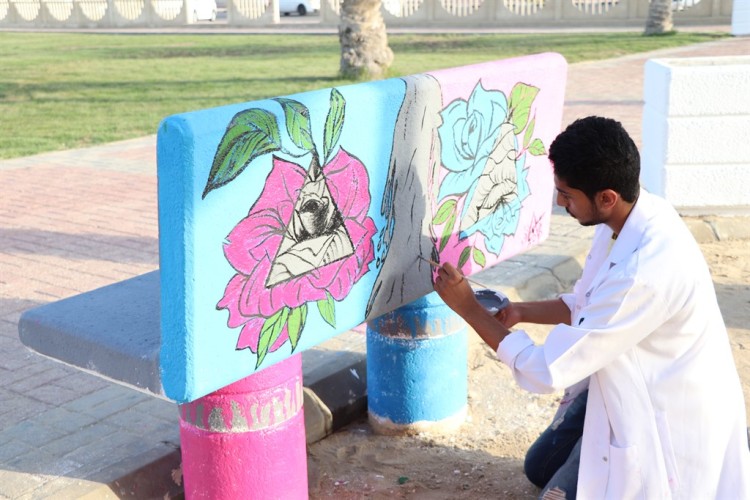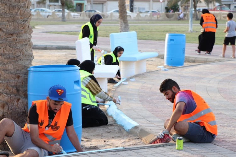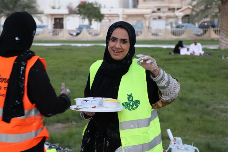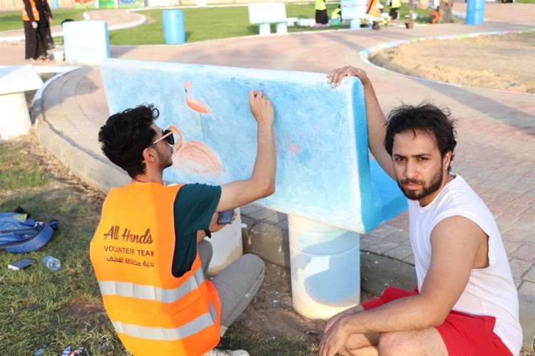 شارك 40 متطوعا ضمن فريق «All hands» في الرسم لإعادة تأهيل حديقة الناصرة بمحافظة القطيف، وذلك بدعم من بلدية القطيف حيث يزورهم بشكل يومي المهندس خالد العتيبي ويوفر للفريق كل احتياجاتهم من مواد العمل والأصباغ والمستلزمات.