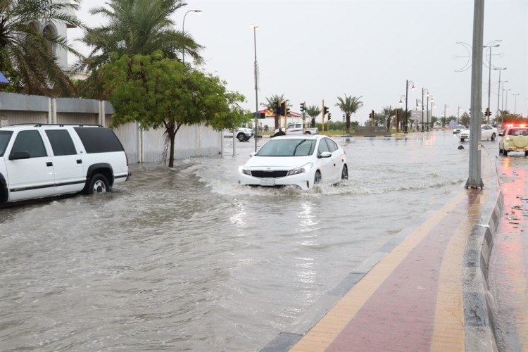 سحب رعدية تغرق شوارع القطيف بمياه الأمطار