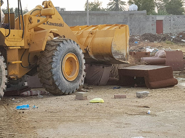 حملة لرفع انقاض المنازل المتضرره من مياه الصرف الصحي بالعوامية