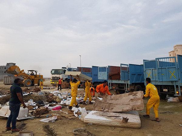 وشاركت البلدية بعدد من المعدات في الحملة تضمنت ”4 قلاب، شيول، سكسر رول اف“، مشيرة الى ان العمل مستمر بالحملة حال وجود مخلفات، بالاضافة الى القيام باعمال مكافحة الحشرات في المناطق التي تم تطهيرها.