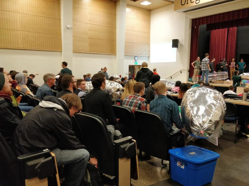 تقدمت الخميس الماضي 30 فرقة في تخصص الهندسة الميكانيكية Mechanical Engineering في جامعة ولاية Oregon state University، للمسابقة التي أطلقتها د. Bryony Dopont والتي تقتضي صناعة منطاد قادر على حمل أكبر قدر من البالونات وإنزالها.