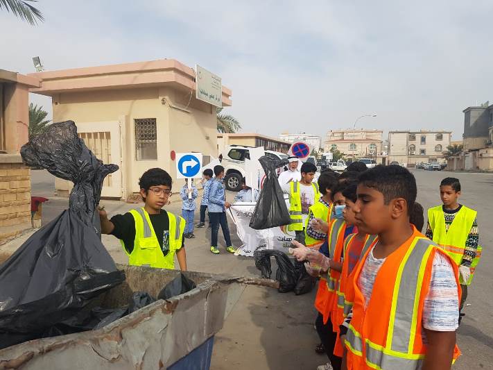 طلاب ابتدائية الخندق تبادر بتنظيف سيهات لتفعيل يوم التطوع العالمي