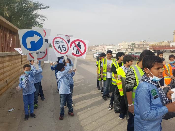 وبادروا بتوعية السائقين بأهمية الإلتزام بالإشارات المرورية ومدى فوائدها في حفظ الأمن والسلامة على الطلاب وعلى الحياة المجتمعية.