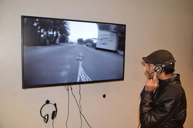 وبالحديث عن مشاركته في ”الملتقى“ أوضح أنه أول فيديو له حيث يعتبر تجربة وانطلاقة في نفس الوقت تحت مسمى ”فوضى مجردة“ الذى عبر فيه عن ”الفوضى“ من خلال لعبة قديمة وهي ربط العلب الفارغة بحبل في ”دراجة“ والتجول بها في طرقات الحي.