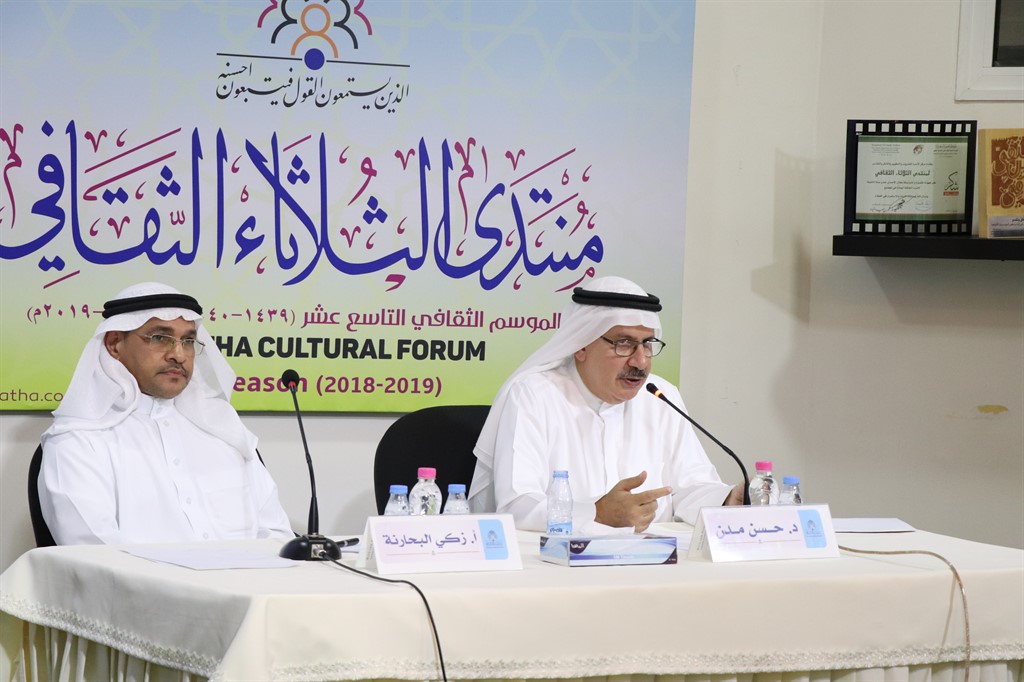 وفي الأمسية التي حل فيها الدكتور توفيق ال سيف ضيف شرف، شدد الدكتور مدن على دعوته لمصطلح ”الثقافة في الخليج العربي“ بدلا عن ”الثقافة الخليجية“ موضحا بأنه لا يمكن الحديث عن ثقافة في هذه المنطقة مسقطة عن بيئتها العربية وأفقها العربي.
