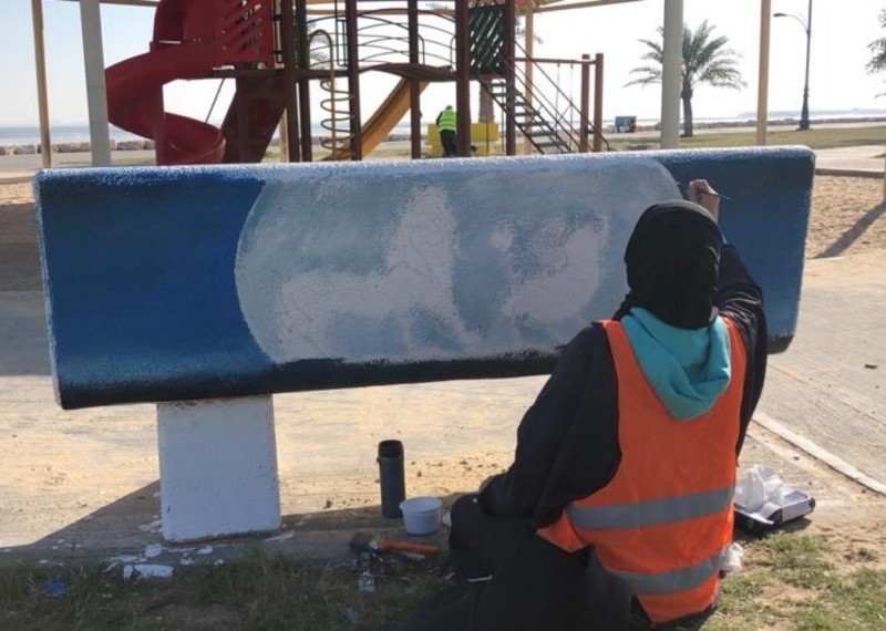 نشر 45 رساما و60 متطوعا البهجة في كورنيش الغدير بسيهات ضمن مبادرة ديرتنا جميلة التي اطلقتها بلدية محافظة القطيف ونفذها فريق «all hands» .