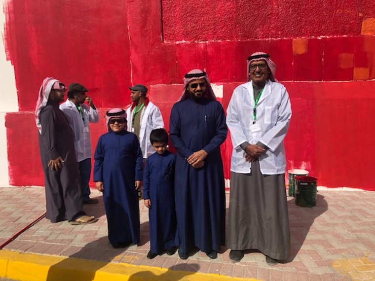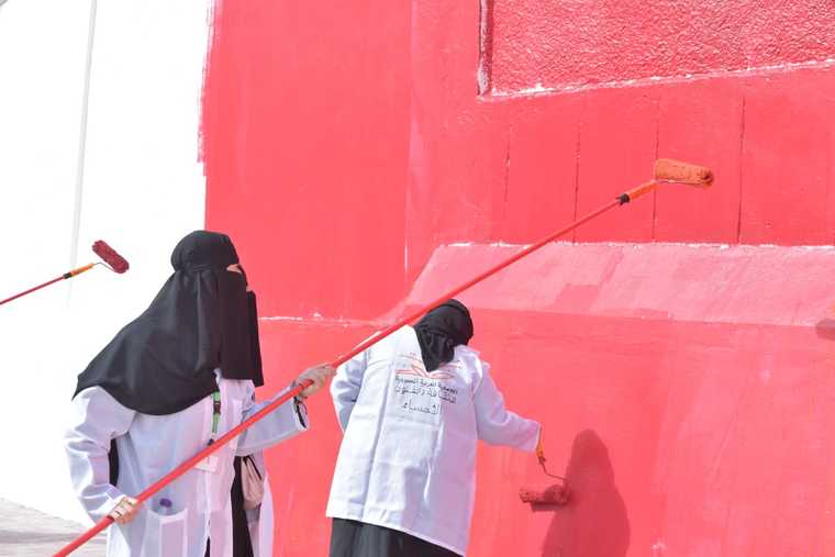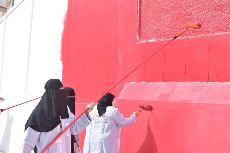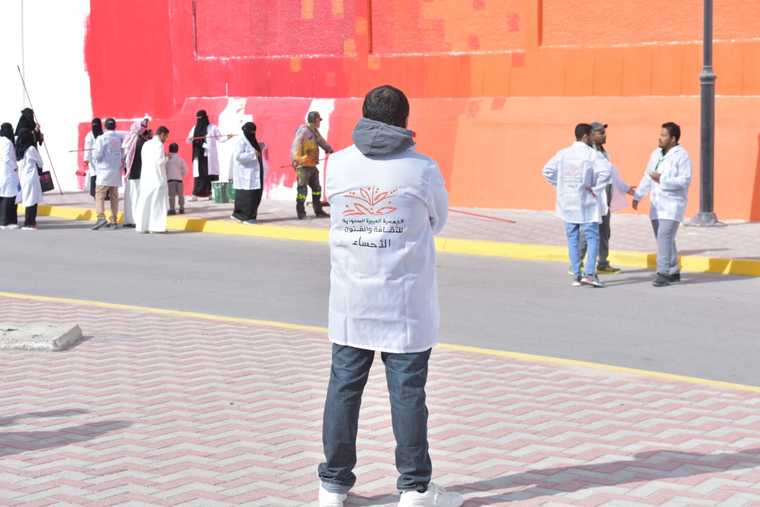 وأوضحت مشرفة الفنون التشكيلية بجمعية الثقافة والفنون بالأحساء لا سلمى الشيخ بأن هذا العمل الفني التطوعي بإشراف جمعية الثقافة والفنون بالأحساء ويشارك فيه أكثر من 50 فنان وفنانة من الفنانين التشكيليين الأحسائيين.