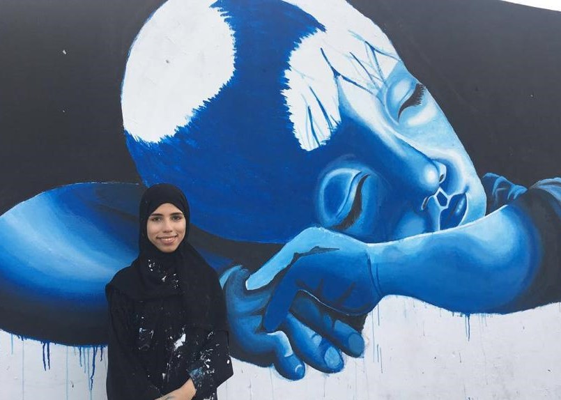 وقالت أن فكرتها في هذه الجدارية تعبّر عن ”طفل يحلم خارج المجرة، وخلفه فضاء لامتناهي من النجوم والأحلام“.