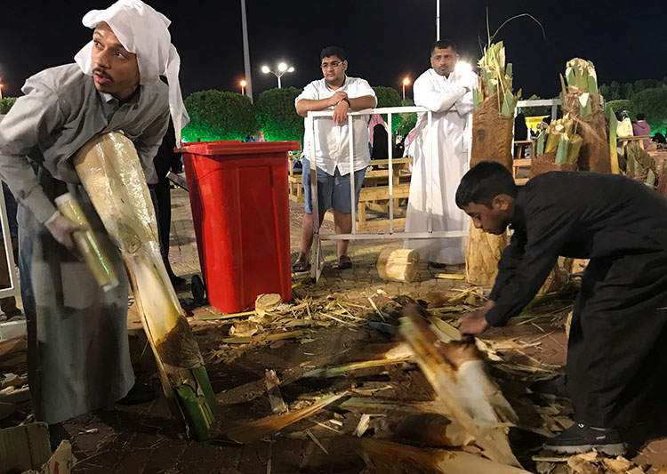 وذكر الشاب العريفي في حديثه الخاص مع «جهينة الإخبارية» خلال زيارتها للمهرجان، أنه يعمل على ”خرَف النخلَ“ منذ مايقارب 25 سنة، والتي تعني قطع عذوق التمر أو الجني، وكذلك استخراج ”الطلاّع“ من النخلة أو ”الجذب“ الذي يُسمى بـ «قلب النخلة».