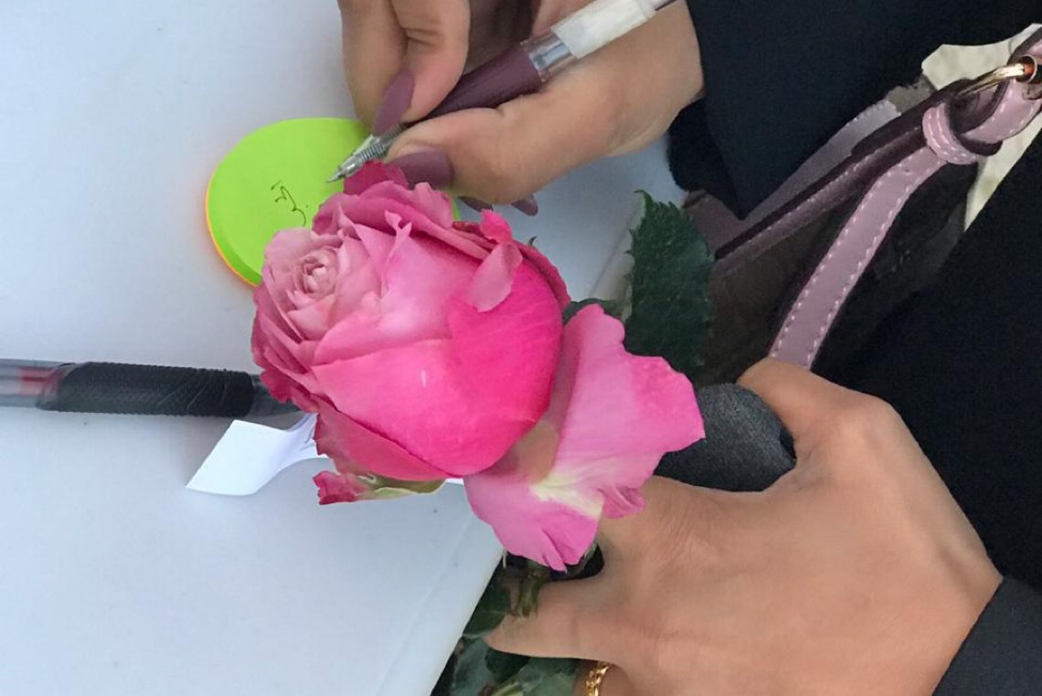 وقال قائد الفريق مسلم ال موسى تضمنت الفعالية توزيع الورد وكتابة كلمات عن المحبة. مشيرا الى مشاركة 5 متطوعين في المبادرة قاموا بتوزيع 100 وردة.