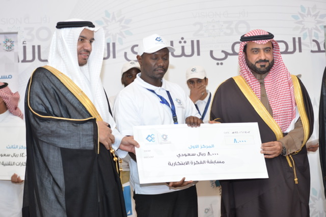 وسلم وكيل المحافظة معاذ الجعفري ونائب محافظ المؤسسة للتدريب الدكتور راشد الزهراني ومدير عام التدريب التقني بالشرقية محمد السلوم الجوائز المالية للفائزين في المسابقة والتي وصلت إلى 250 ألف ريال.