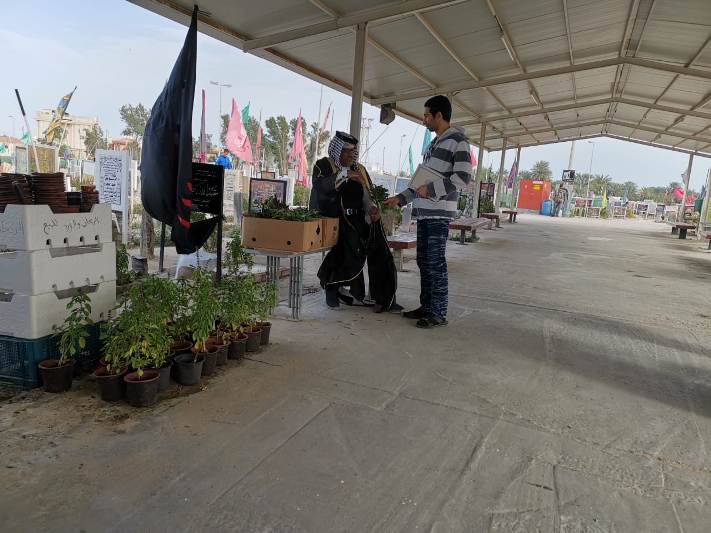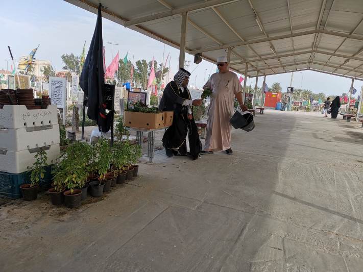 بالصور.. الكربلائي يهدي ”الريحان“ لزوار مقبرة تاروت