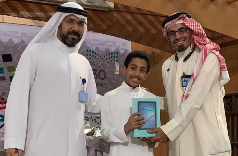 وحظي الطالب محمد أبو حسين بالجائزة الكبرى وهي عبارة عن جهاز تابلت، وذلك من خلال السحب على عدد من الجوائز القيمة.