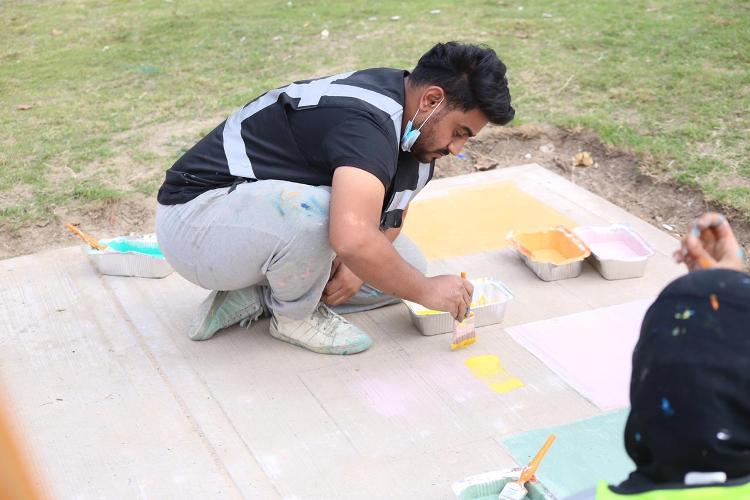 وقام بصيانة منطقة الألعاب لتكون أكثر جاذبية وأمانا للصغار، وكذلك الرسم على المقاعد وترميمها، صيانة مظلات الحديقة واضافة لمسات جمالية للحديقة بشكل عام.
