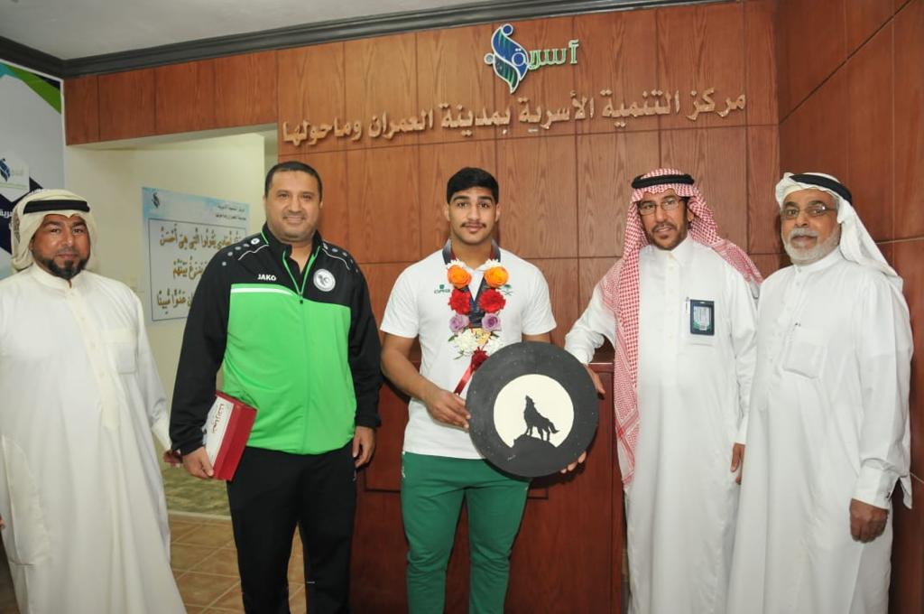 بالصور.. العمران تحتفي ببطل العالم في رفع الأثقال وتكرم أسرته