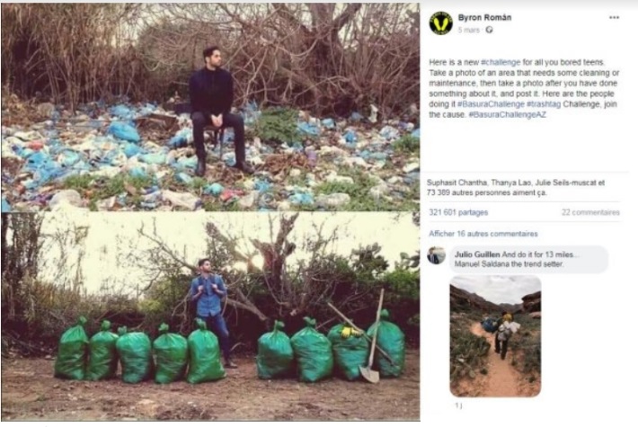وقال في المنشور: ”إليكم هذا التحدي الجديد أيها المراهقون الكسالى. التقطوا صورة لمنطقة تحتاج إلى بعض التنظيف أو الصيانة، ثم صورة بعد الانتهاء من ذلك، وانشروها“