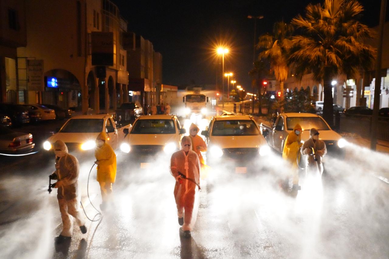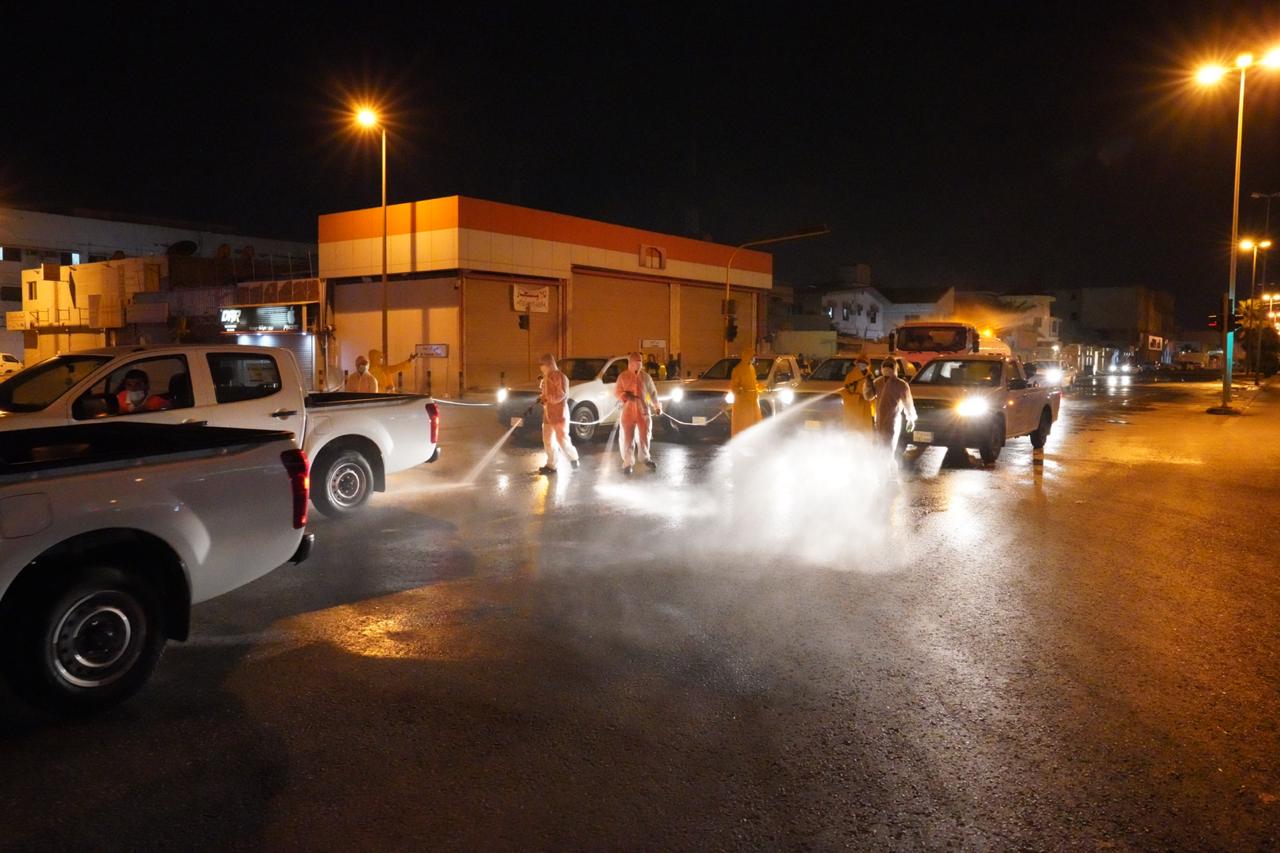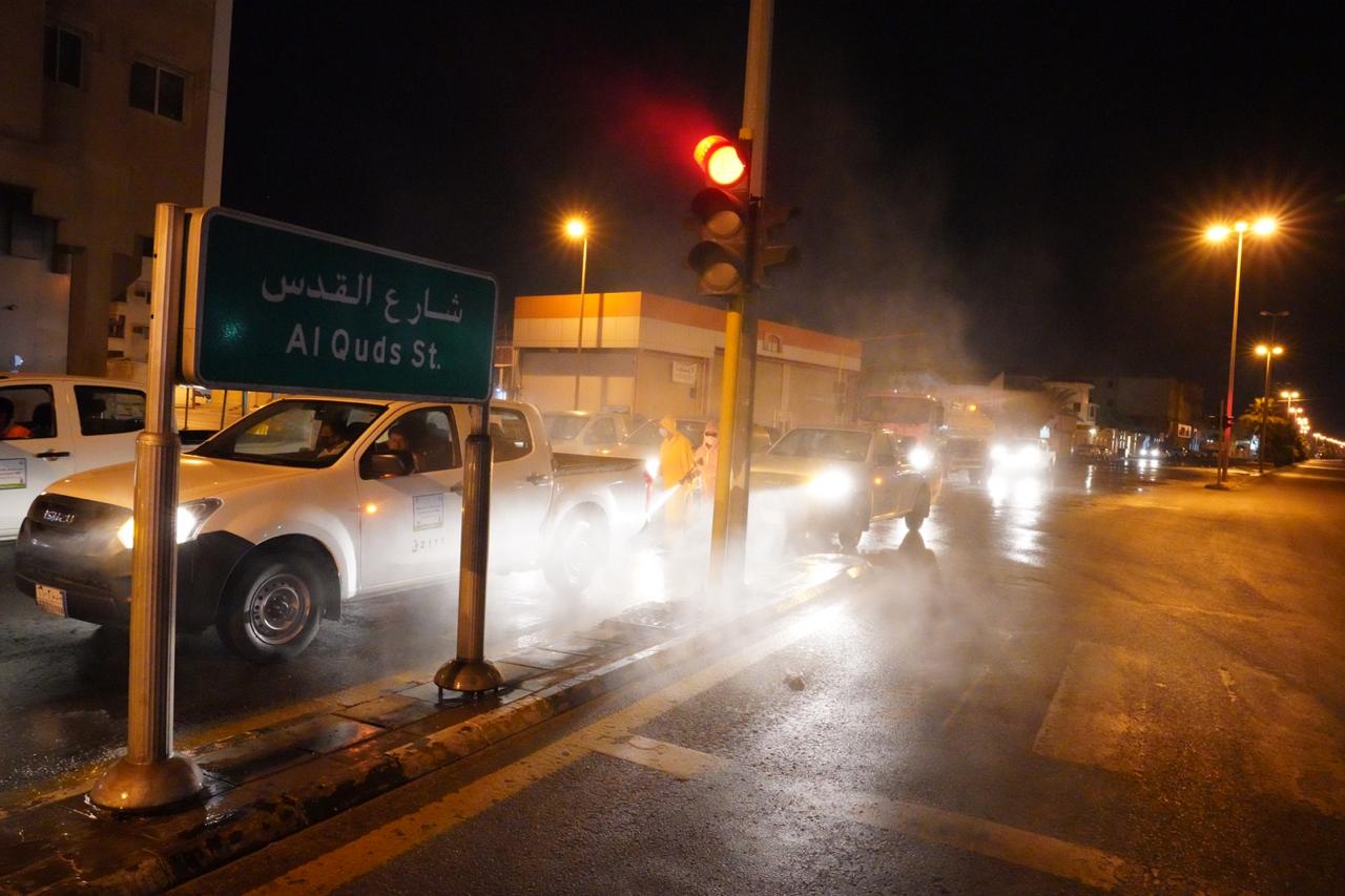 وشملت أعمال التعقيم الشوارع الرئيسية في القطيف كشارع القدس ومدينة سيهات ومدينة صفوى.