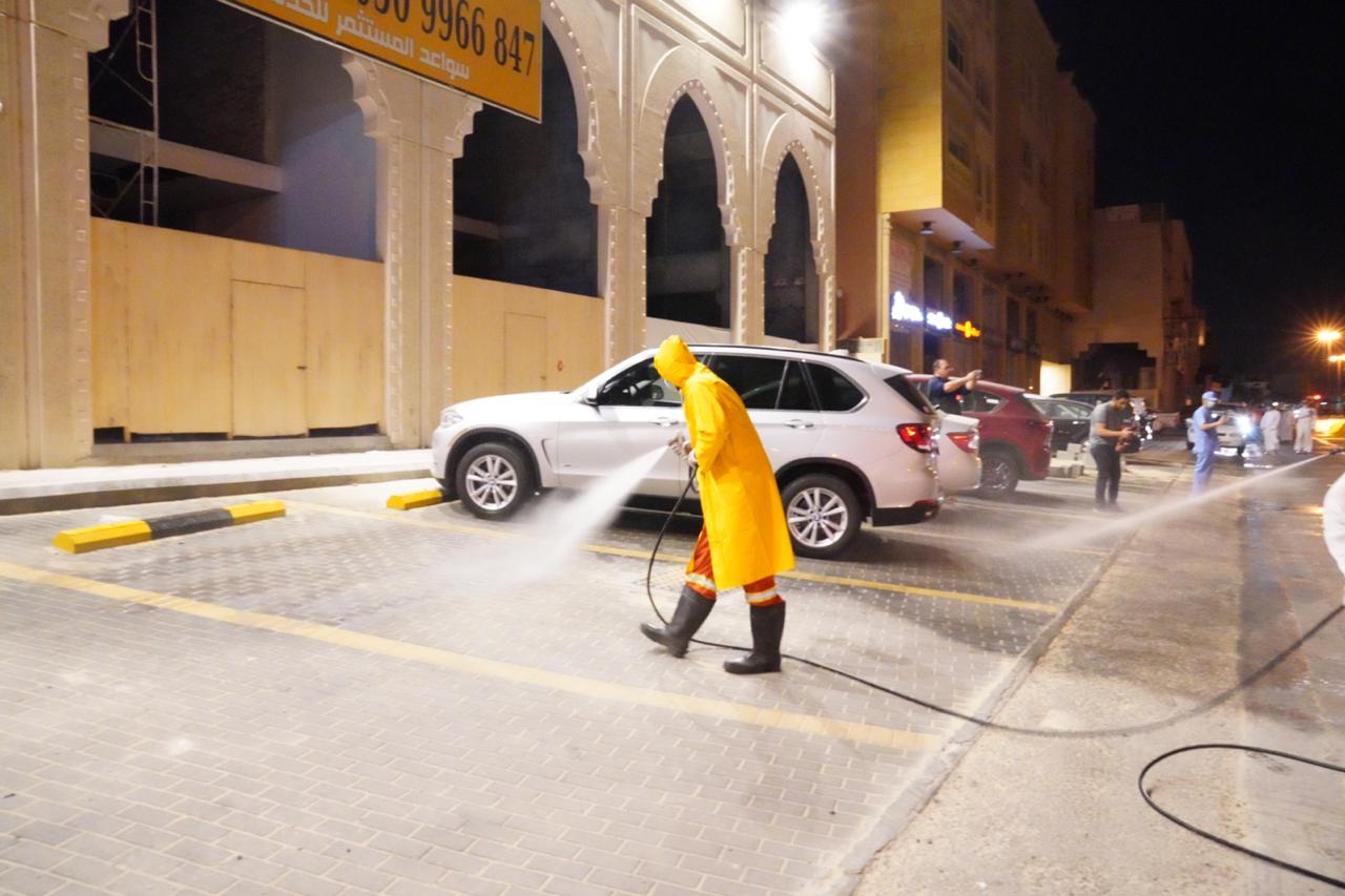 بلدية القطيف تكثف تعقيم الشوارع والأرصفة