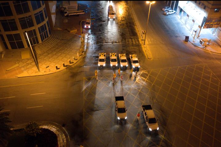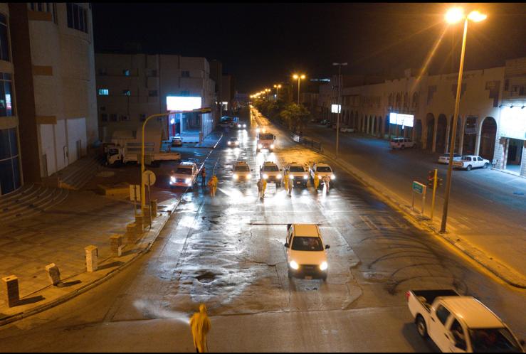وأظهرت مقاطع فيديو وثقها مصور جهينة الإخبارية عمال البلدية يقومون بتعقيم وتطهير الشوارع والأرصفة.