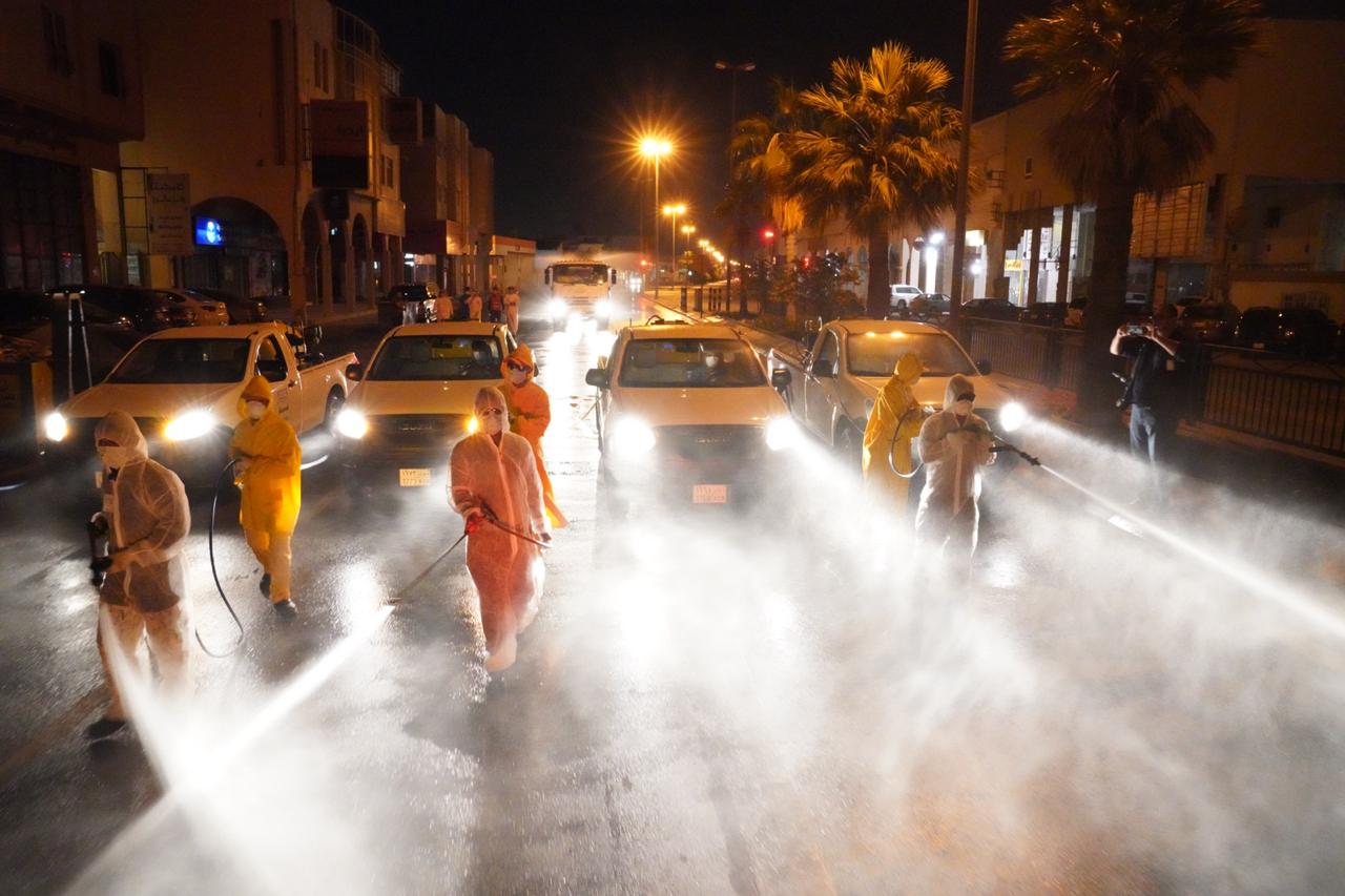 قامت بلدية محافظة القطيف بتكثيف جهودها لأعمال التطهير والتعقيم للشوارع والمواقع الحيوية كإجراء احترازي للحد من انتشار وباء فيروس ”كورونا“.