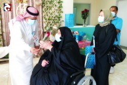 ”الطب المنزلي“ يقدمون الورود لكبار السن في مركز ”لقاحات القطيف“