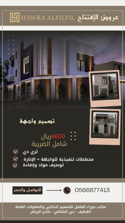 مكتب المهندسة ”حوراء الفلفل للتصميم الداخلي“ استشارة مجانية لمدة أسبوعين للتواصل: 0546393127 الانستغرام: https://instagram.com/hawra.idoffice السناب: ... |