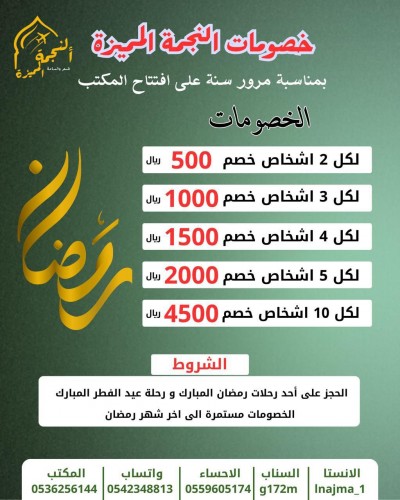 أقوى عروض السفر إلى العراق مع وكالة ”النجمة المميزة“ السناب: https://t.snapchat.com/VuoX7rPz موقعنا: المزروع - شارع عبد الله بن الحارث - مقابل الدخل المحدود... |