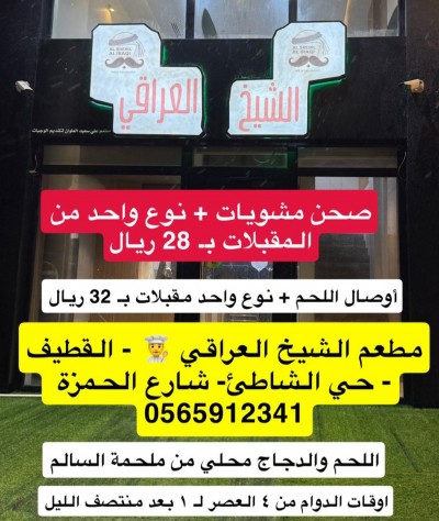 مطعم ”الشيخ العراقي“ مذاق طيب وسعر أطيب أوقات الدوام: من الرابعة عصرا إلى 1 منتصف الليل موقعنا: حي الشاطئ - شارع الحمزة... |