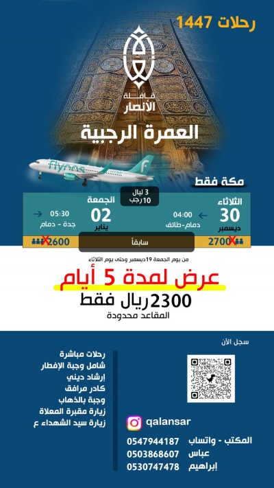 قافلة الأنصار تقدم لكم عرضها المميز لرحلة العمرة بمناسبة مولد الإمام علي (ع).. تتوفر لدينا خيارات متعددة تناسبكم طيران ✈️ حافلة 🚌 شامل وجبات بالافطار أو بدون ✅مميزات إضافية ... |