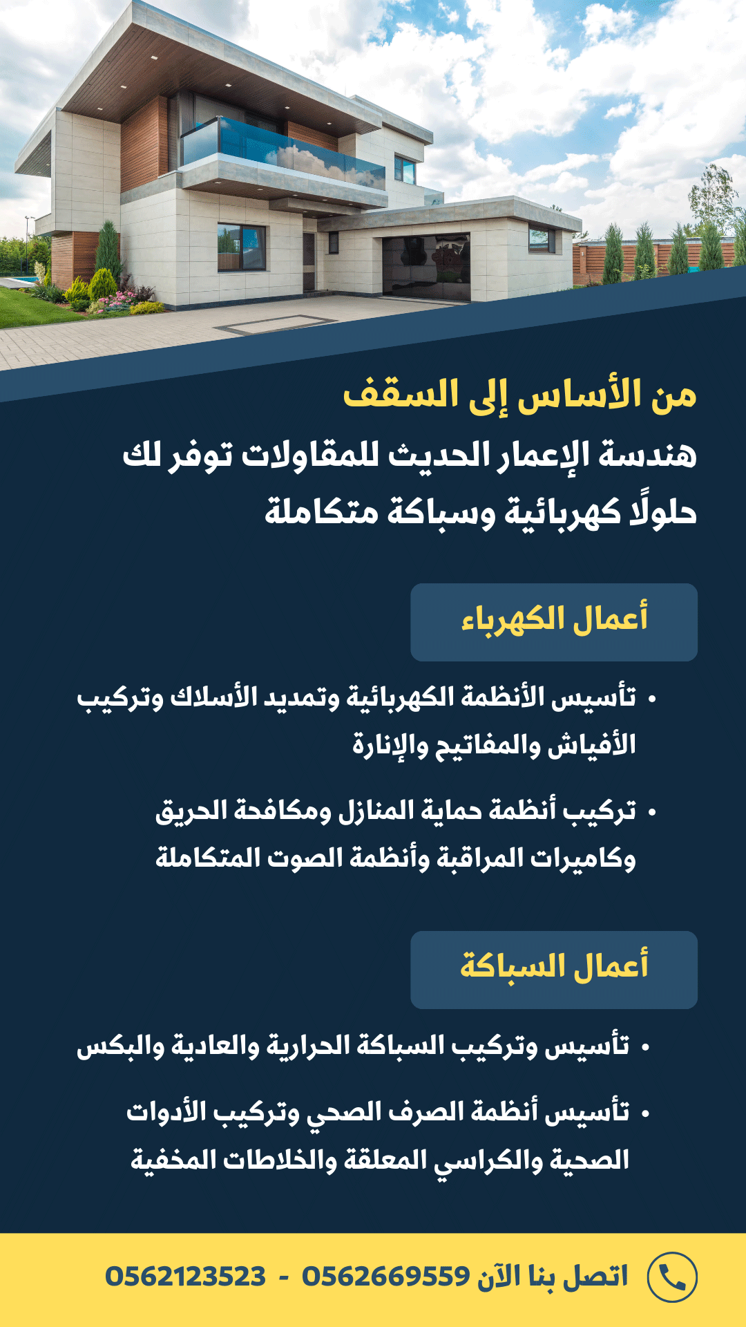 تبحث عن حلول كهربائية وسباكة متكاملة لمنزلك أو مشروعك؟