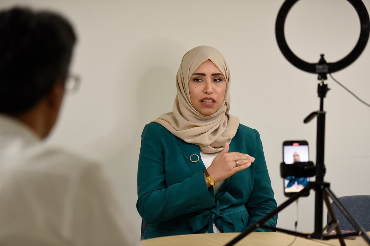 واستعرضت بعضا من أعمالها التطوعية في الولايات المتحدة ومنها خدمة الطلاب السعوديين من خلال المشاركة في ورشات العمل أو المخيمات الثقافية بالإضافة إلى التطوع في المدارس الأمريكية.