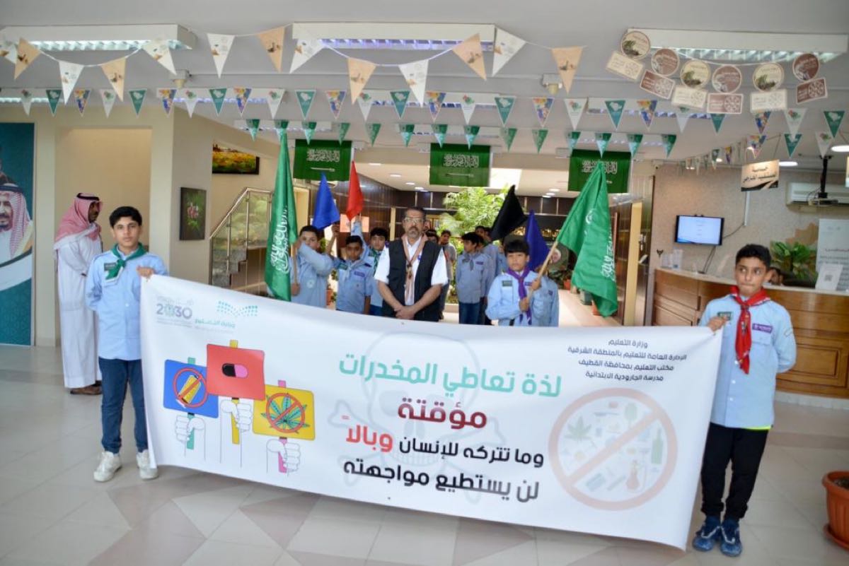 القطيف.. 30 طالب في مسيرة كشفية لرفع الوعي بأضرار المخدرات