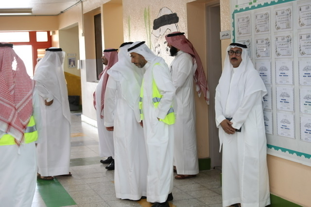 وتفقد م. البحيري أركان المبني المدرسي والمناطق المخصصة لتجمع الطلاب ومخارج الطوارئ إضافة لمعاينته معدات السلامة المدرسية ووضع فرص التحسين لها بما يكفل تأمين بيئة مدرسية أمنة.