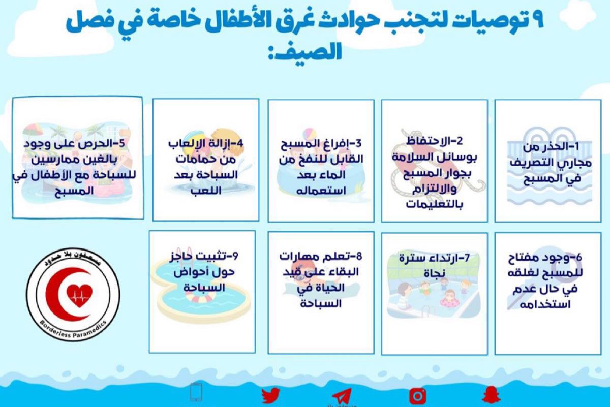 طالب تيسير أحمد الزراع، المدرب الدولي للسباحة وعضو فريق ”مسعفون بلا حدود“ التطوعي، أصحاب المنتجعات الزراعية والاستراحات التي تتوفر فيها برك سباحة بالتعاقد مع مدربين سباحة ومنقذين من الجنسين، وذلك لتجنب حوادث الغرق أو الاستجابة السريعة في حالة وقوعها.