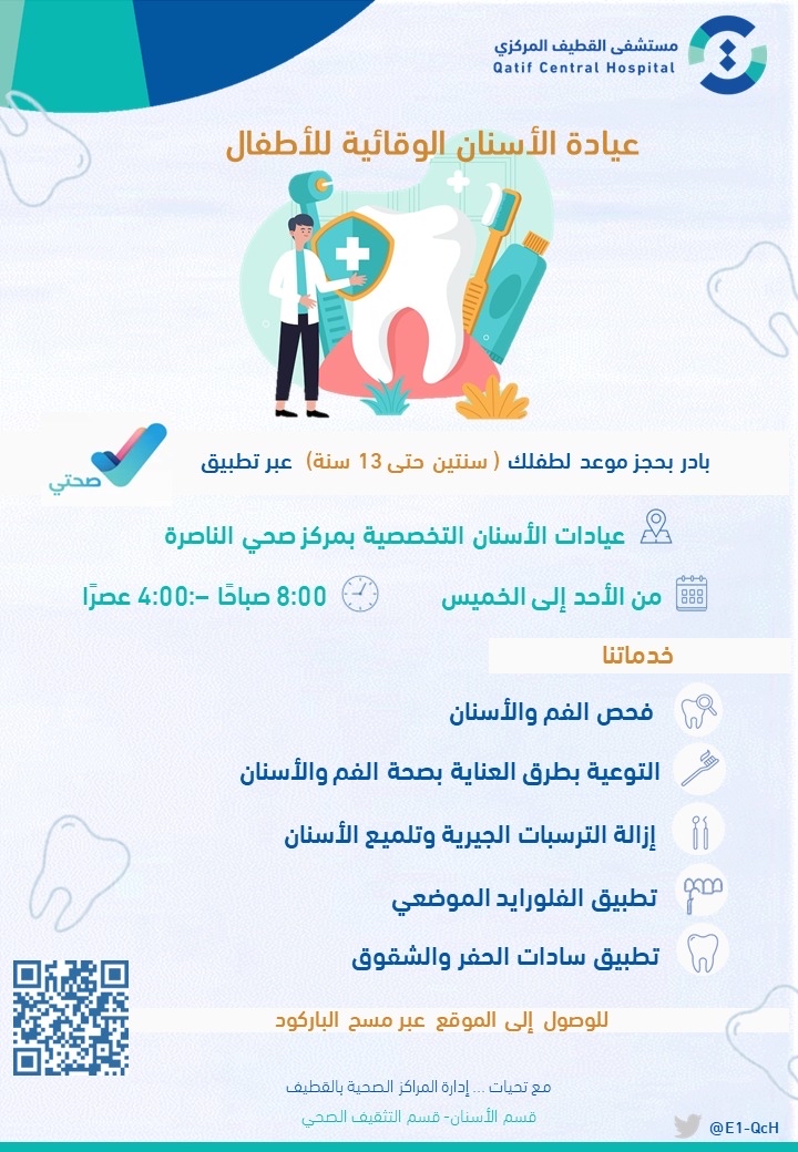 وتعمل عيادة الأسنان الوقائية للأطفال في مركز صحي الناصرة من الأحد إلى الخميس، من الساعة 8:00 صباحًا وحتى الساعة 4:00 عصرًا، وتسعى العيادة إلى تقديم العلاجات الوقائية لتقليل نسبة تسوس الأسنان عند الأطفال.